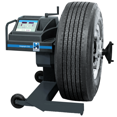 El megaspin 250 es un equilibrador de ruedas universal que funciona en camiones, camionetas ligeras, automóviles y motocicletas. Adecuado para servicio móvil con elevación integrada, giro manual y tres voltajes posibles.